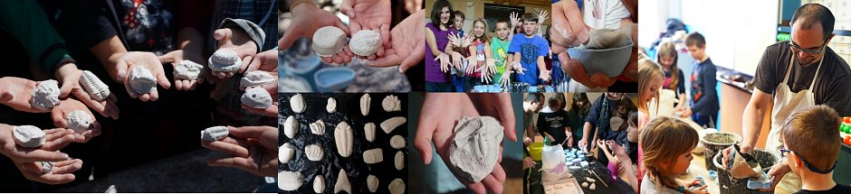 2. STANOVIŠTĚ: laboratoř a odlévání (kreativní dílna). Disponujeme největší kolekcí silikonových forem v ČR (přes 50 druhů). Žáci si vlastnoručně odlévají modely trilobitů, amonitů či dinosauřích zubů. -- Cíl: Rozvoj jemné motoriky, poznávání morfologie živočichů, radost z vlastního výrobku.
