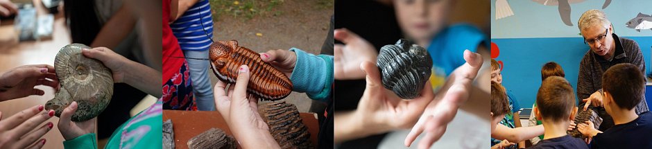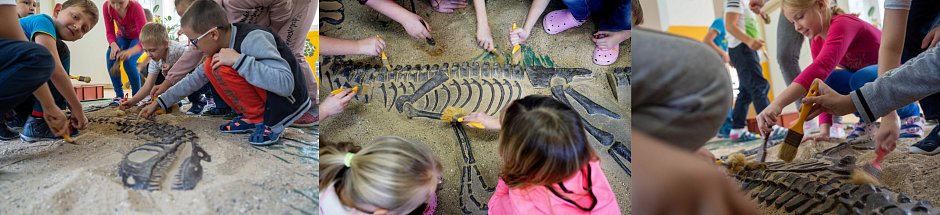 100% HMATATELNÝ ZÁŽITEK: v době, kdy děti tráví čas u displejů a virtuálních realit, my vracíme do výuky fyzický kontakt. Přivážíme spousty materiálu – skutečné zkameněliny, modely a odlitky, vykopávku dinosauří kostry. S námi neprobíhá kontakt s exponáty pohledem přes sklo. U nás se na pravěk sahá.